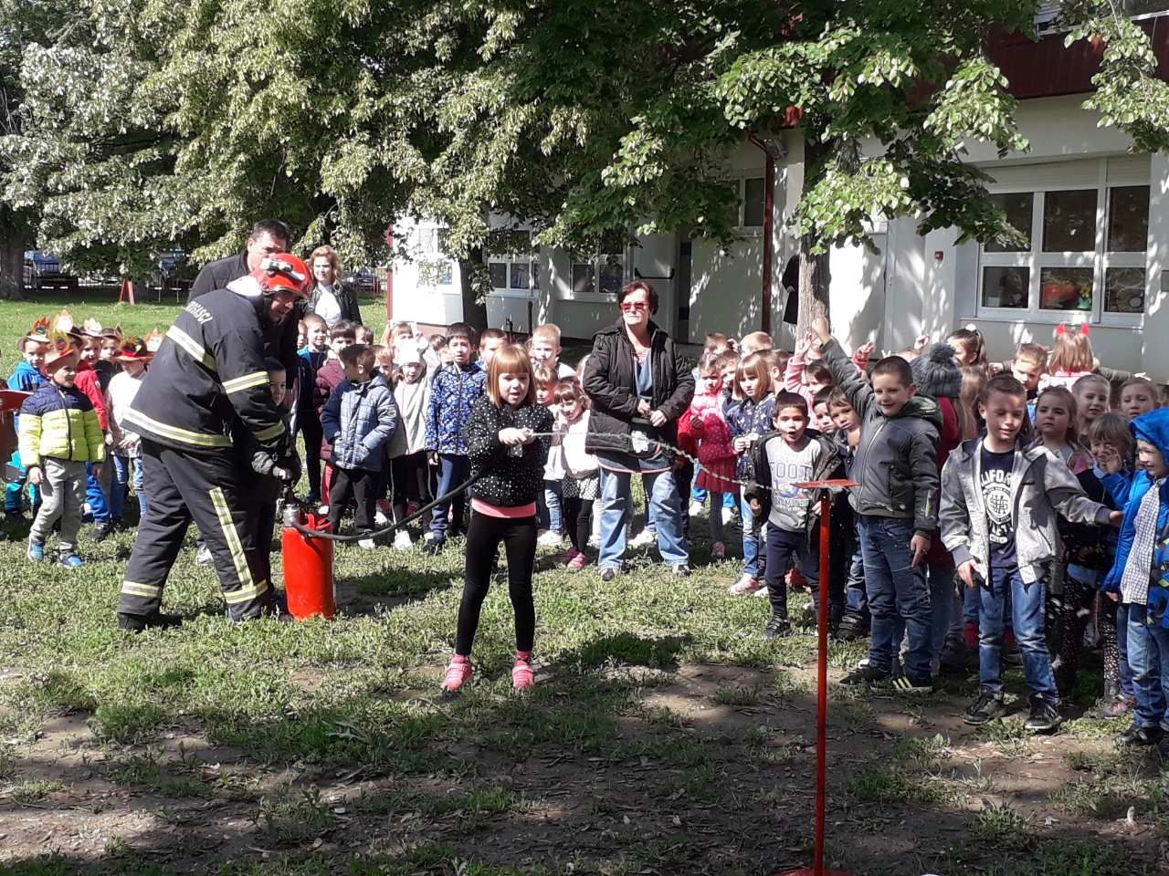 Dio mališana se okušao u rušenju meta korištenjem brentače na vodu, što im je bilo zanimljivo, a ujedno povod da se u budućnosti uključe u rad vatrogasnog pomlatka.