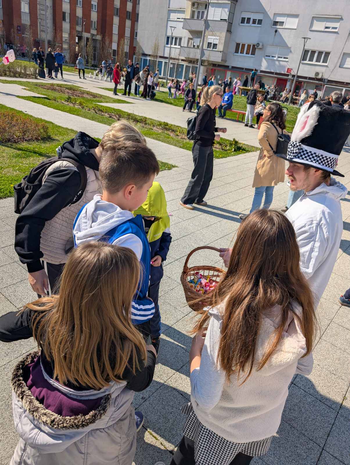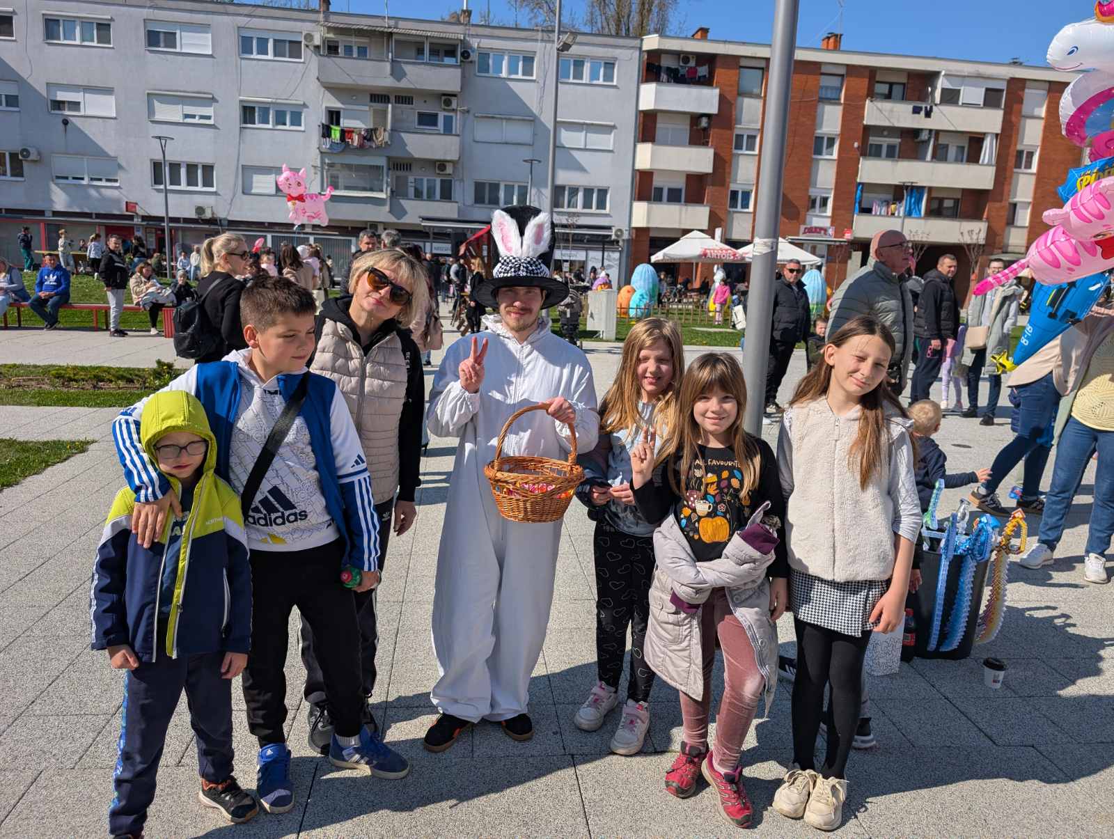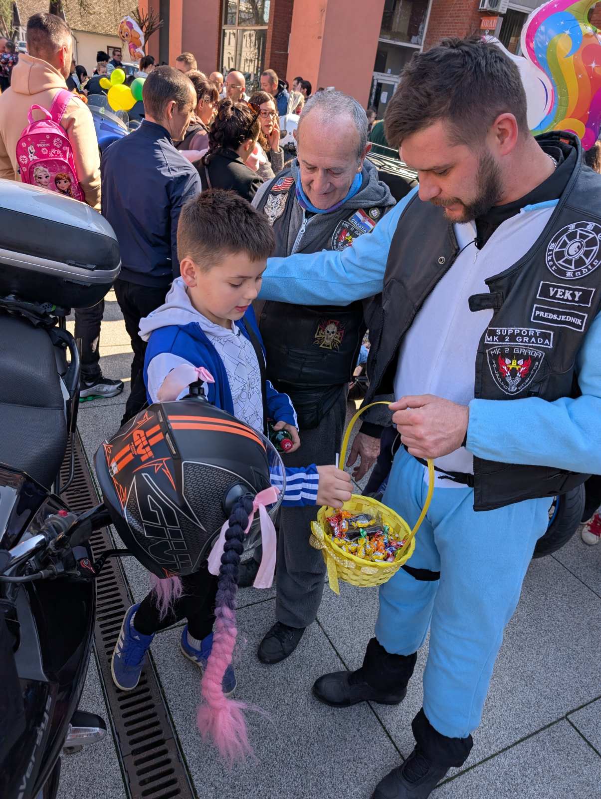 Prvo su djeca, u prisustvu voditelja Romane Hudovernik, Sonia Habusa i Maria Pernara, bila prisutna na belišćanskom trgu i s velikim veseljem dočekala tzv. “Moto zečeve”, članove moto kluba „2 grada“ Valpovo – Belišće koji su djecu razveselili podijelivši im poklone, ali još više dopuštenjem da zasjednu na njihove motocikle.