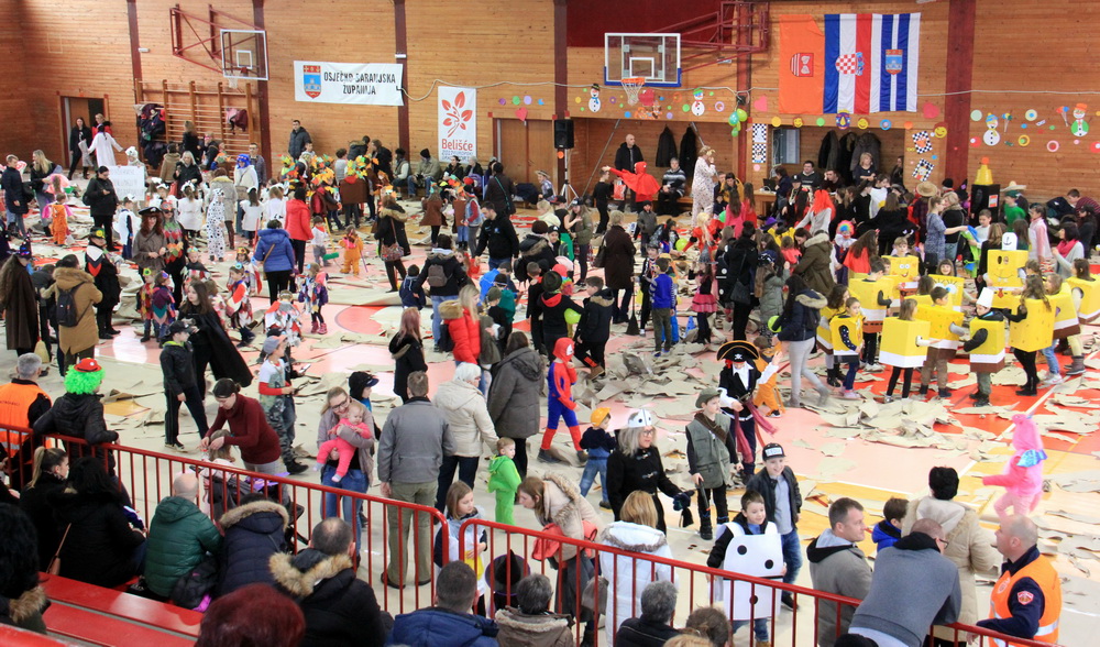 Maskirana povorka polaznika Dječjeg vrtića “Maslačak” Belišće, učenika nižih razreda belišćanske osnovne škole i ostalih građana, u pratnji Puhačkog orkestra Grada Belišća, belišćanskih mažoretkinja te Puhačkog orkestra DVD-a Valpovo, nakon šetnje središtem Belišća, stigla je u nastavno-sportsku dvoranu u kojoj je zamjenica gradonačelnika Belišća Ljerka Vučković predala ključeve grada voditeljici dječjeg karnevala Moniki Đogaš odnosno u ruke najmlađih Belišćana.