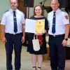Izaslanik Hrvatske vatrogasne zajednice i Zapovjednik VZOBŽ Zoran Pakšec uručio je predsjedniku DVD-a Bocanjevci Milanu Strahincu priznanje VZOBŽ i HVZ.