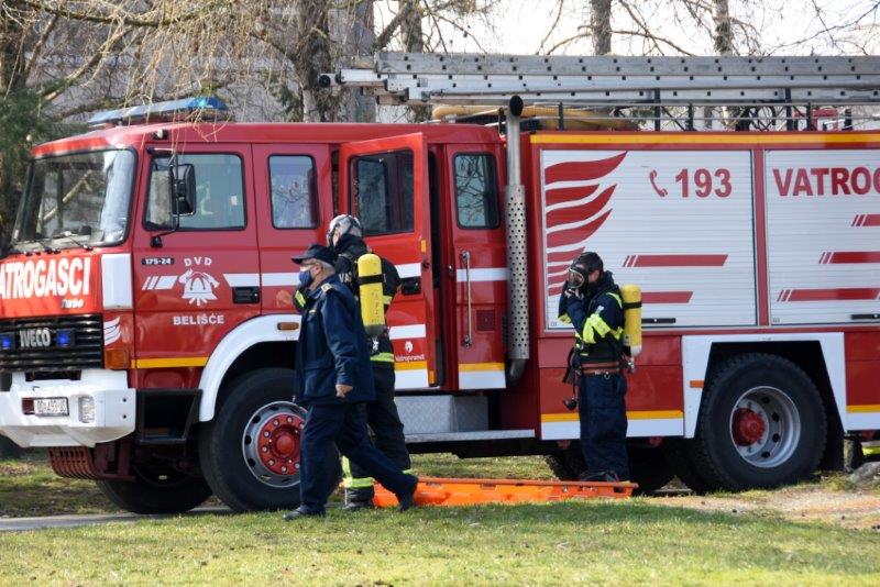 O nastalom događaju ravnatelj obavještava žurne službe, prije svega središnju vatrogasnu postrojba DVD-a Belišće, koji po dojavi dolaze na mjesto nastalog događaja sa dva navalna vozila, gdje ravnatelj upoznaje zapovjednika da nedostaje jedan učenik koji je ostao u objektu škole.